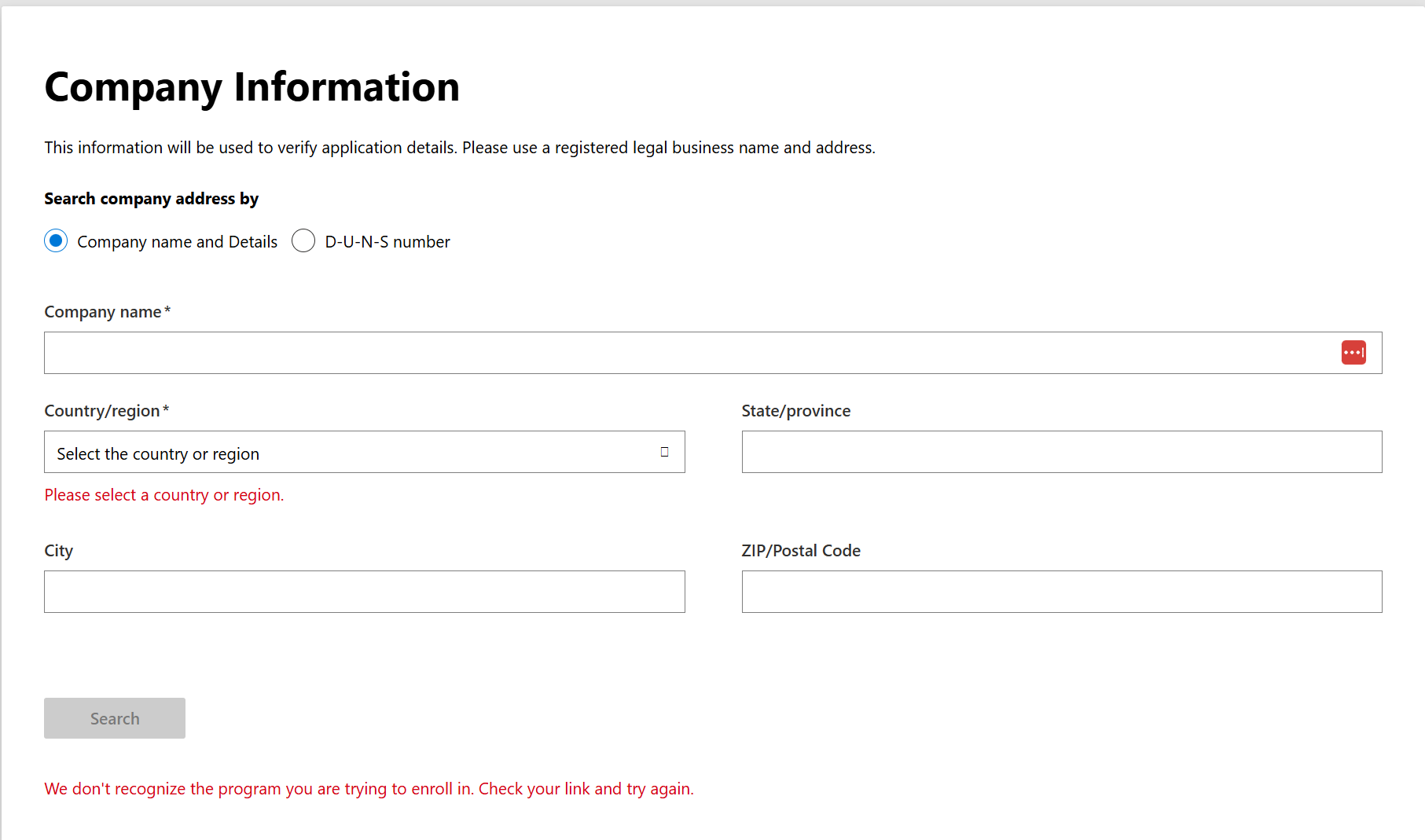 "We don't recognize the program you are trying to enroll in. Check your link and try again."
