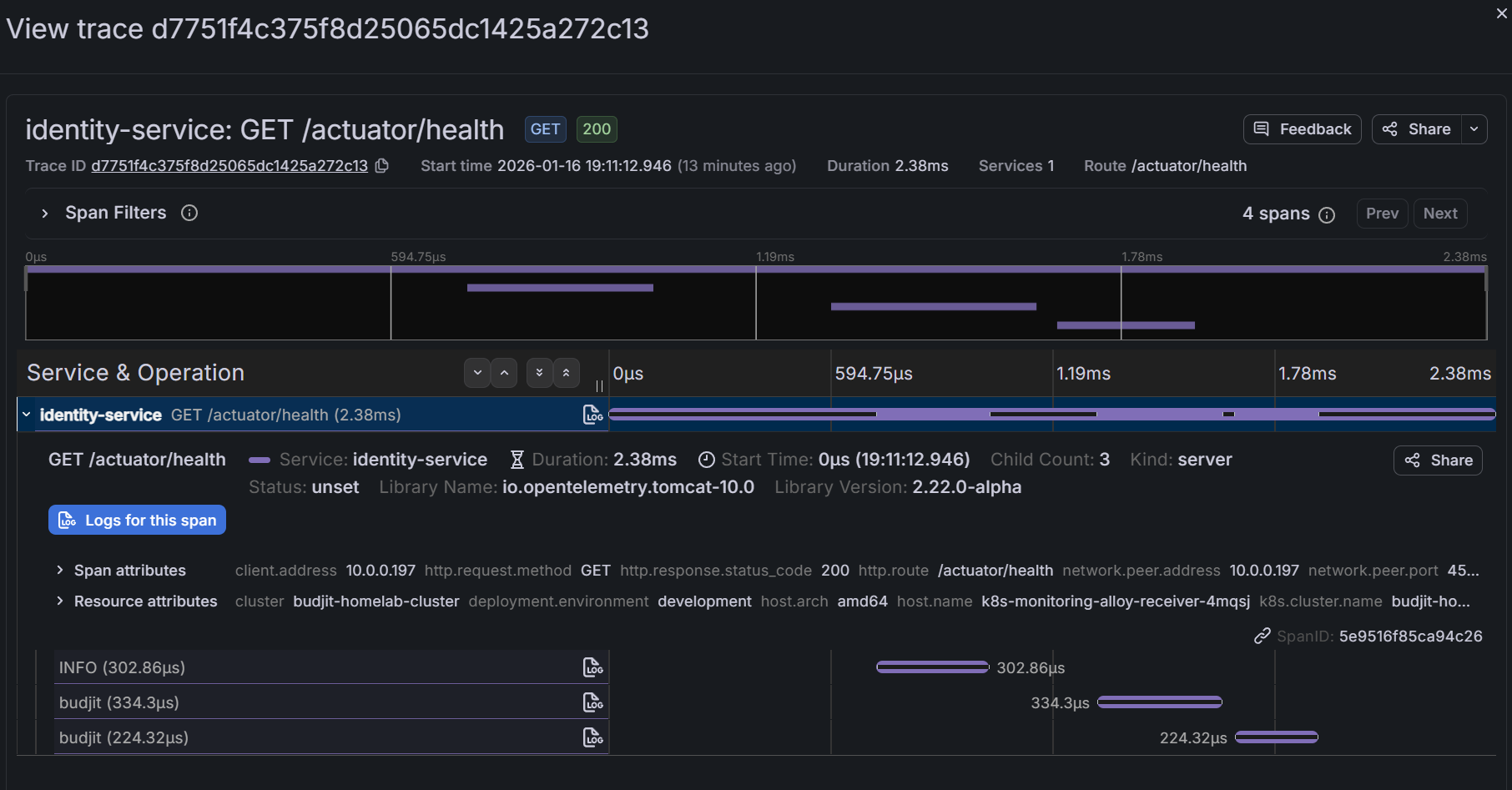 For my homelab, this is fine. The traces still show the service-to-service flow. I just see fewer internal spans per request.