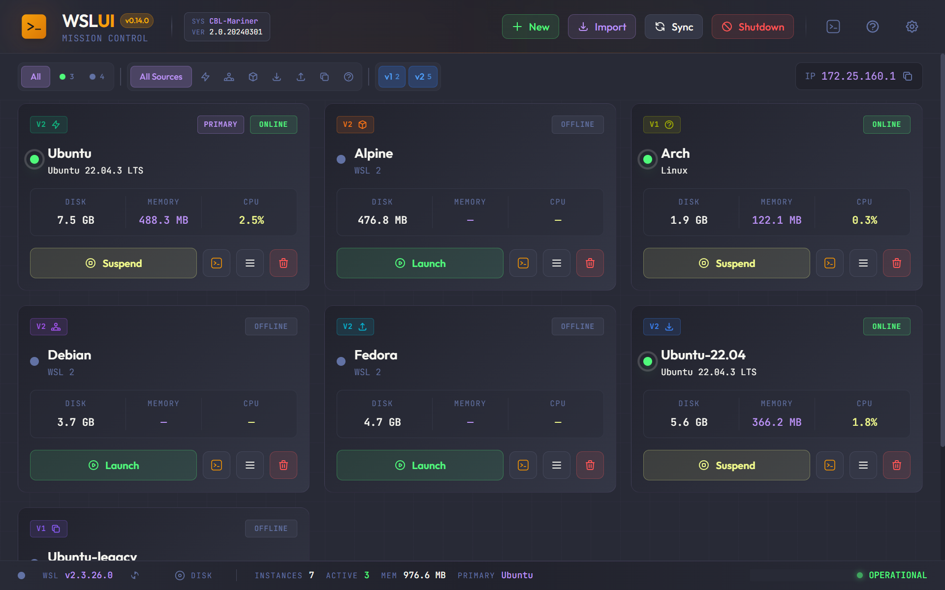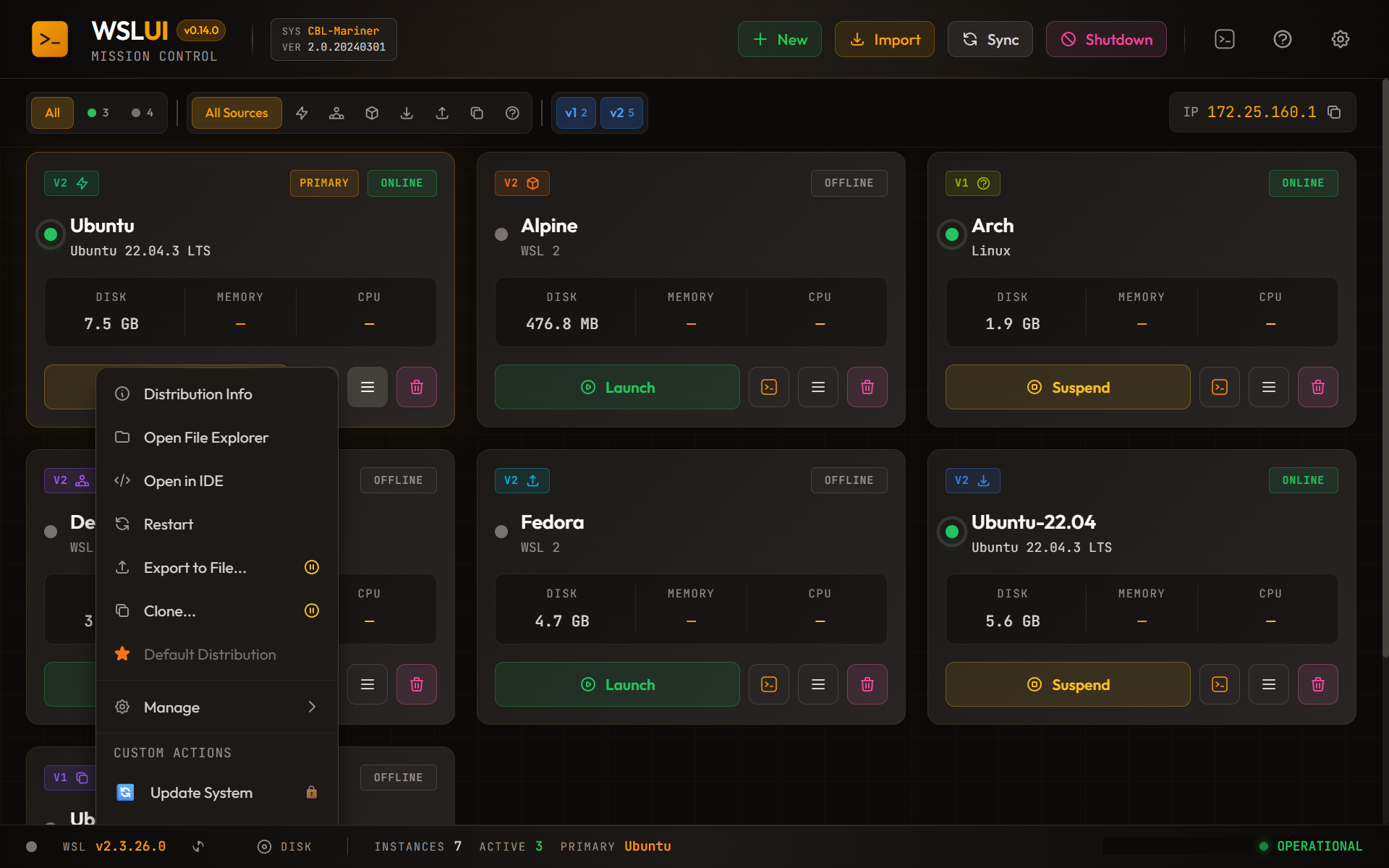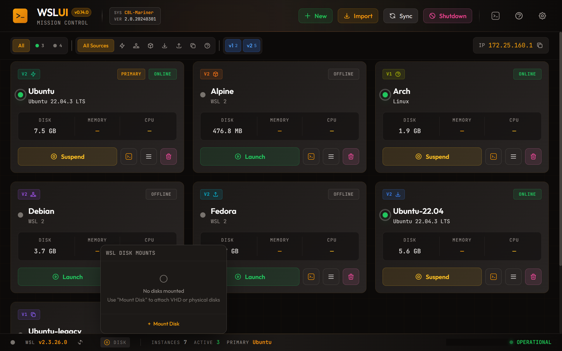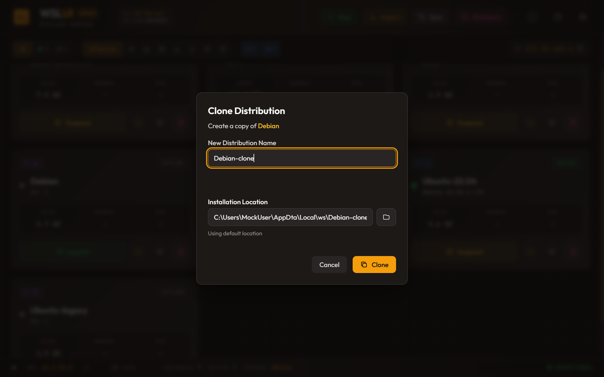Create distributions from Docker or Podman images. WSL UI includes a built-in OCI implementation - no Docker installation required.