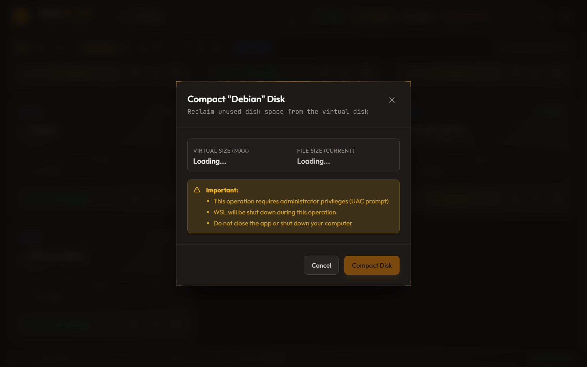 - VHDX Compact - Shrinks the virtual disk file on Windows